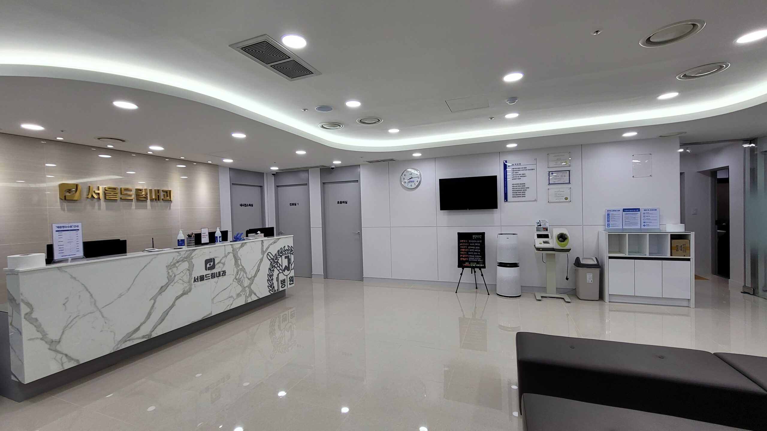 마감현장 상업공간 내과의원 dknock 2025-09-12 0 min read 0 면적: 47평 공사기간: 40일 공간분리: 인포, 기초검사실, 수액실, 영상의학과, 내시경실, 진료실, 간호사실, 탈의실 편의시설: 휴게공간 대기실